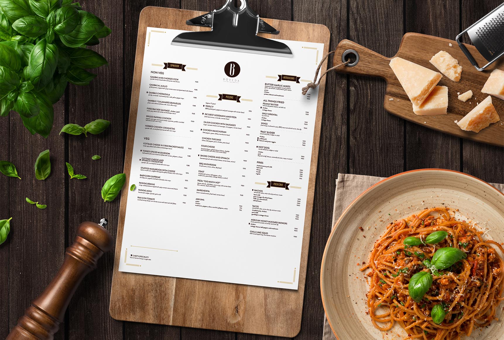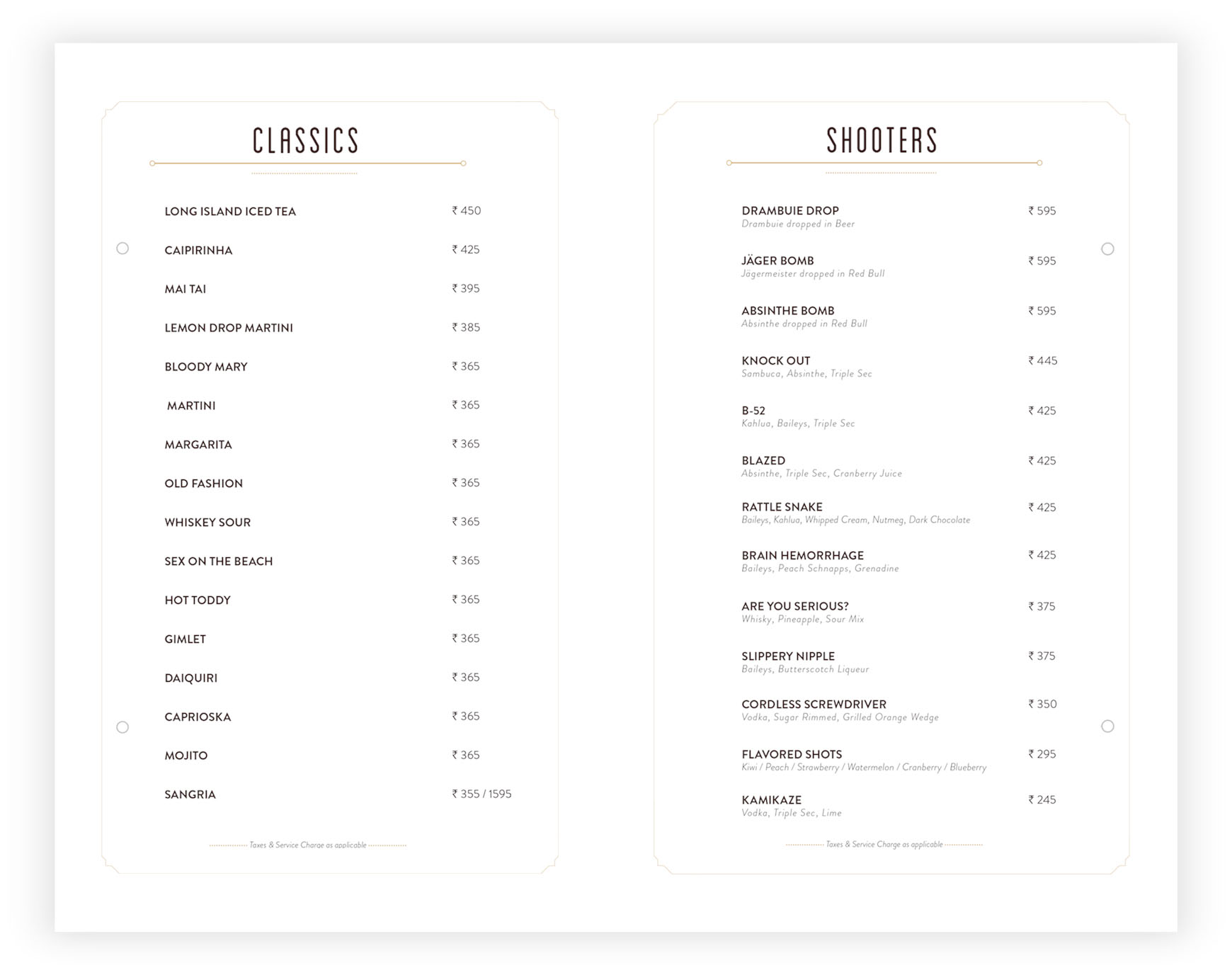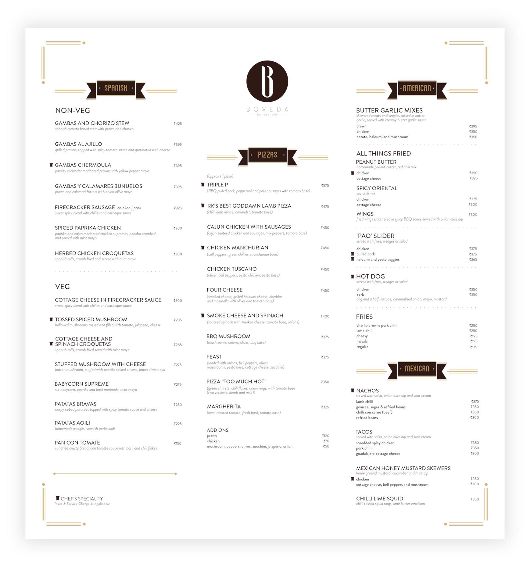 - Keeping in mind the bar’s brand identity and rustic vibe, we decided to adopt a similar design route and colour palette for the menu.