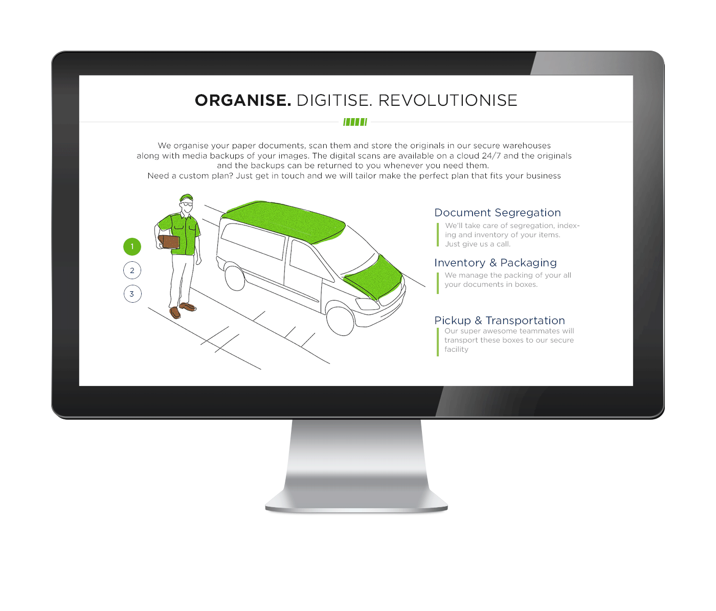 • Since the logistics industry isn’t the most glamorous one, we decided to opt for a creative take on the website to keep it interesting. Taking colour palette reference from the logo, the website has been designed in a parallax format with separate interactive sections.
