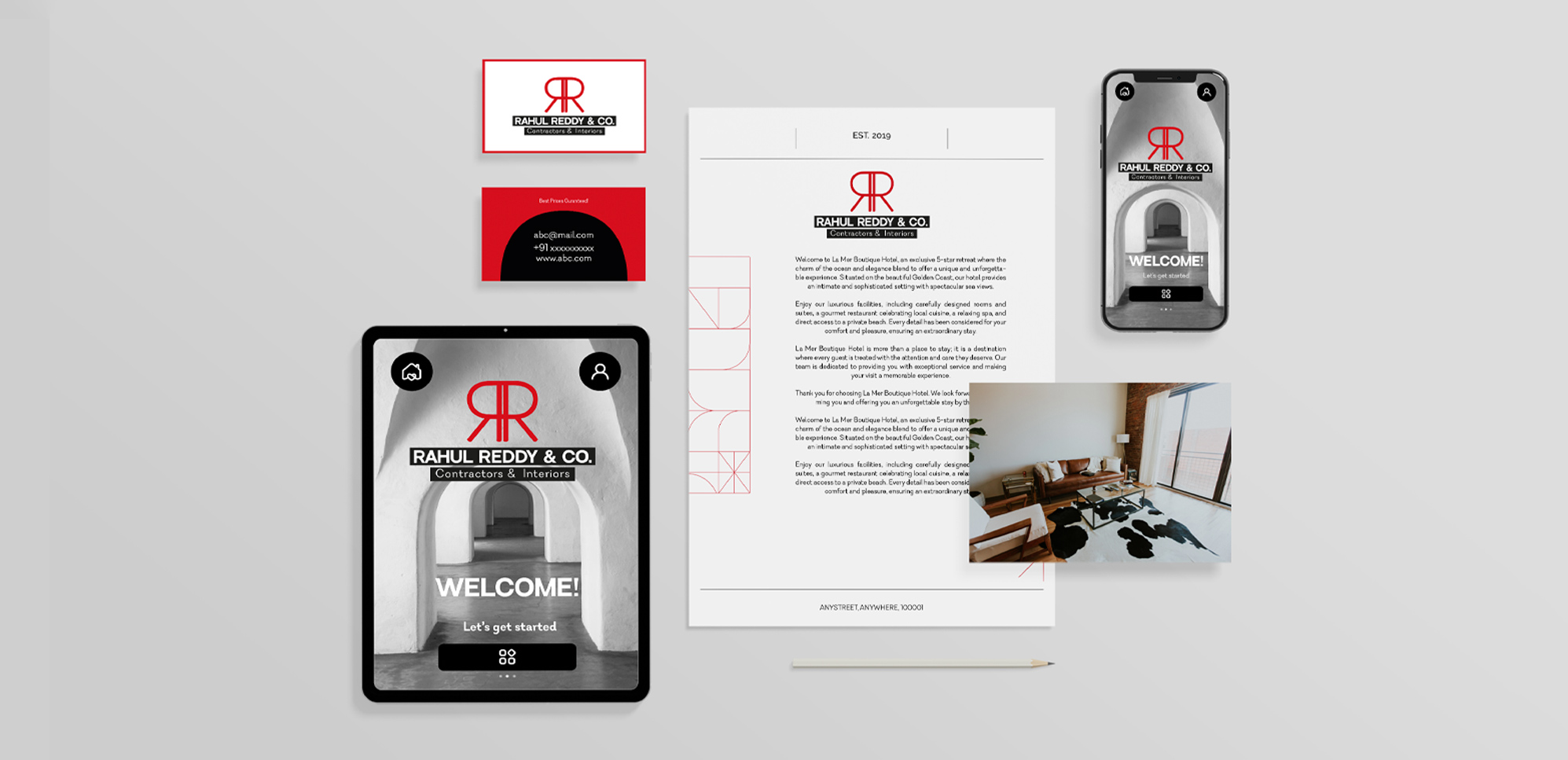 The new identity system brings clarity, boldness, and consistency — repositioning Rahul Reddy & Co. not just as contractors, but as collaborators who build with intention and aesthetic discipline.
