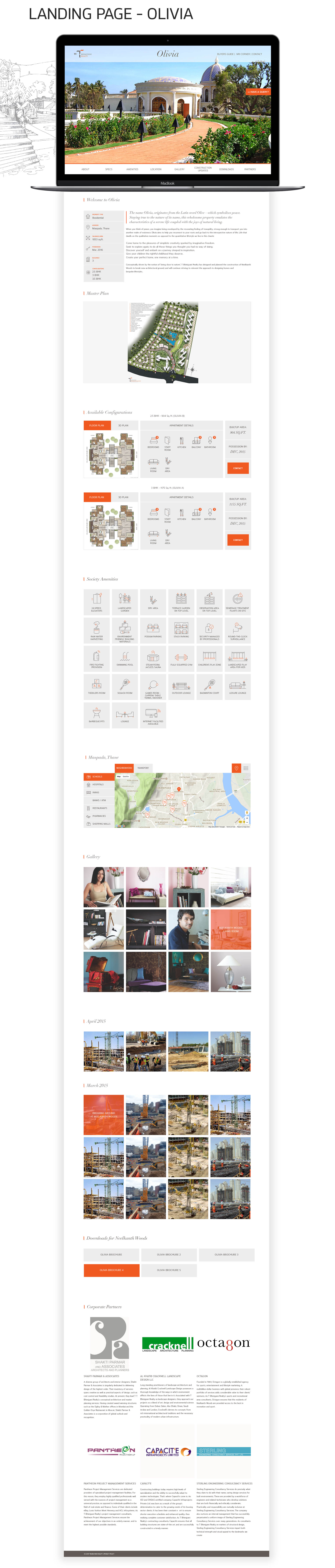 - For the launched phase, Olivia – we created a parallax page linking to each of the sections on the header. This page contained all the information about the first phase such as floor plans, amenities, gallery etc.