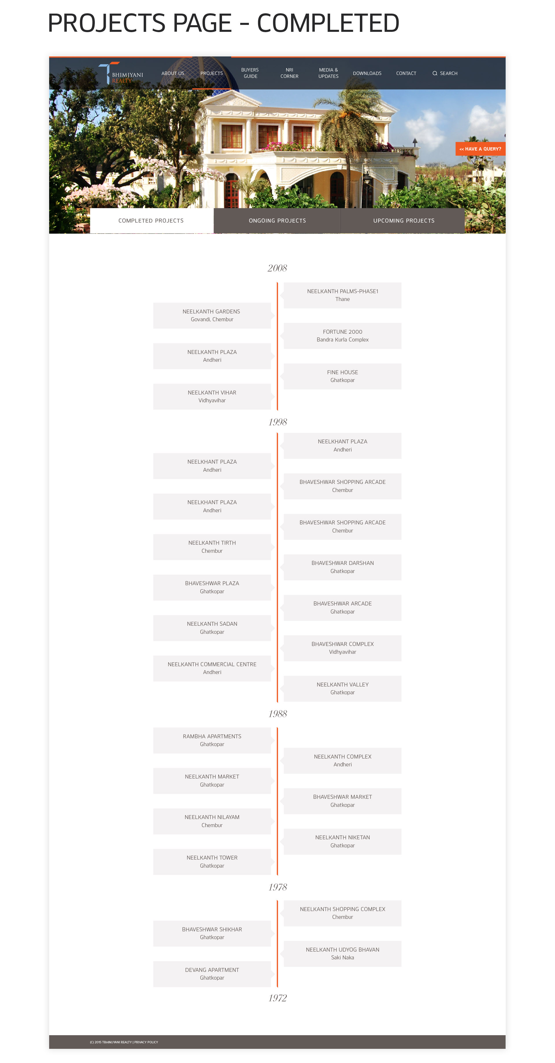 - A distinct microsite within the parent website for their newly launched venture – Neelkanth Woods: Phase 1: Olivia