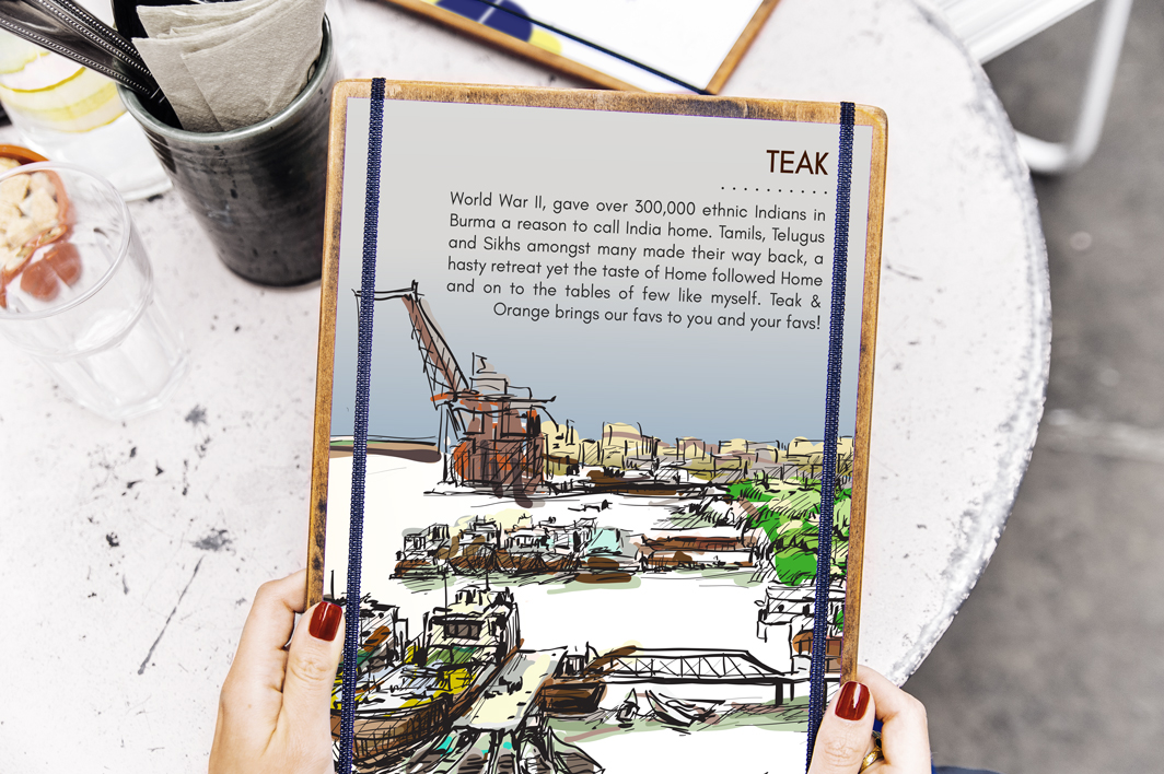 World War II, gave over 300,000 ethnic Indians in Burma a reason to call India home. Tamils, Telugus and Sikhs amongst many made their way back, a hasty retreat yet the taste of Home followed Home and on to the tables of few like myself. Teak & Orange brings our favs to you and your favs!.
